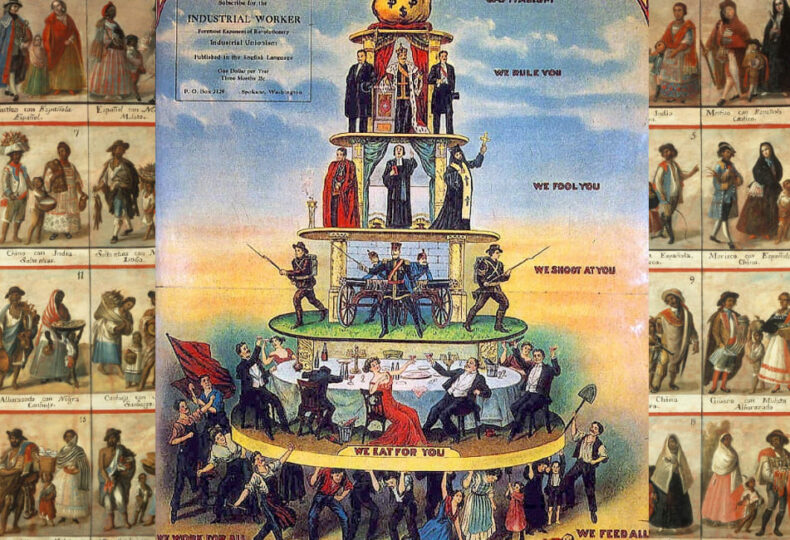 画像出典:Wikimedia Commons – Casta painting all.jpg、Pyramid of Capitalist System.jpg (パブリックドメイン / CC0)