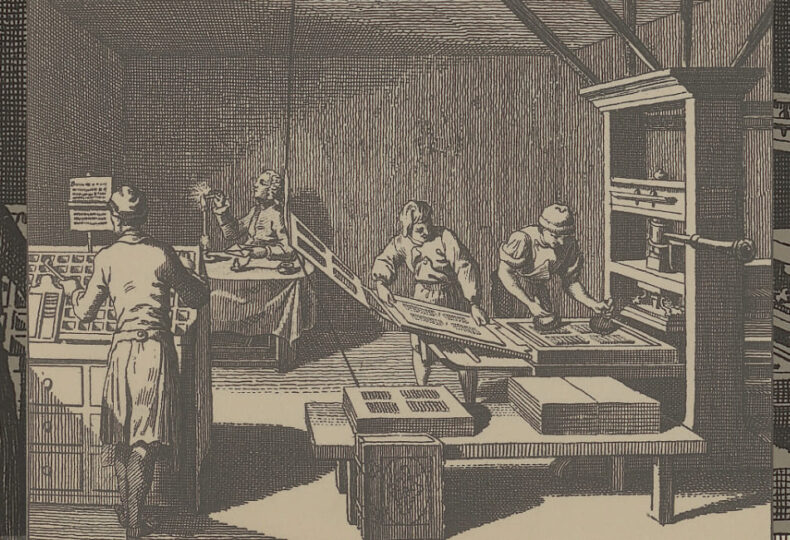 画像出典:Wikimedia Commons – Die Buchdruckerei by Daniel Chodowiecki (150289207).jpg (パブリックドメイン / CC0)