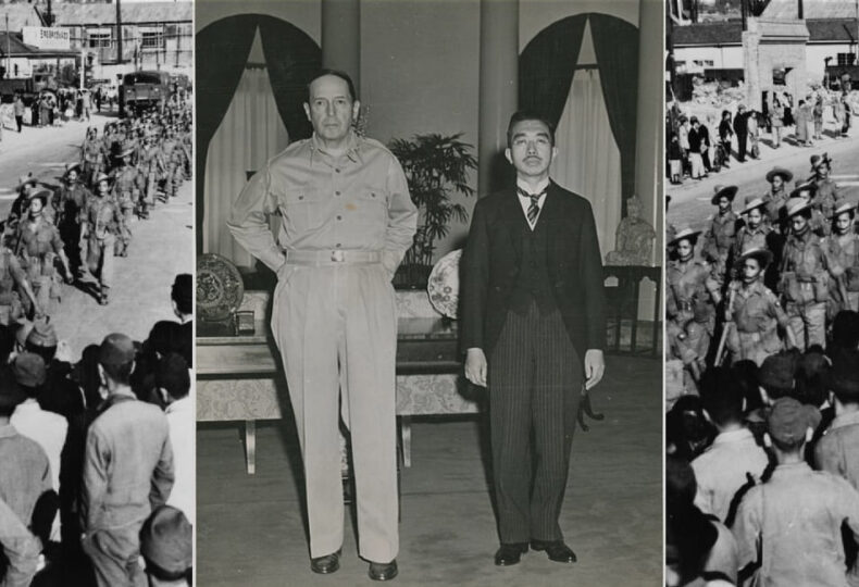 画像出典:Wikimedia Commons – Emperor Hirohito and General MacArthur.jpg、5th Gurkha Rifles, Japan 1946.jpg (パブリックドメイン / CC0)