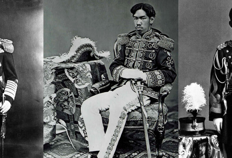 画像出典:Wikimedia Commons – Emperor Meiji in 1873.jpg、Emperor Taishō.jpg、Emperor Hirohito 1928.jpg (パブリックドメイン / CC0)