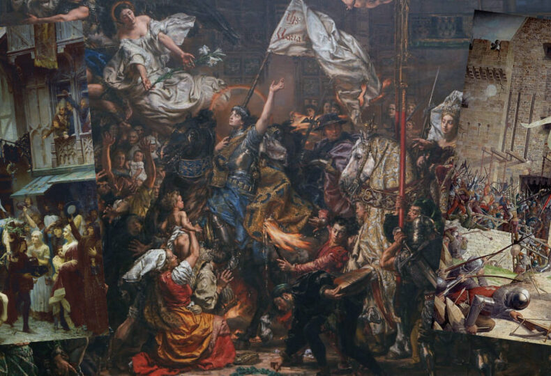画像出典:Wikimedia Commons – The Maid of Orléans.PNG 、Lenepveu, Jeanne d’Arc au siège d’Orléans.jpg、Scherrer jeanne enters orlean.jpg(パブリックドメイン / CC0)