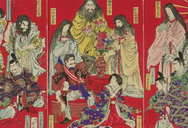 画像出典:Wikimedia Commons – Meiji-tenno among kami and emperors.JPG(パブリックドメイン / CC0)