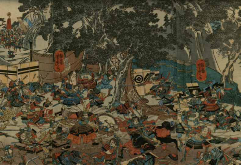画像出典:Wikimedia Commons – Onin-War-1467-1477-The-Battle-of-Onin-by-Utagawa-Yoshitora.png (パブリックドメイン / CC0)